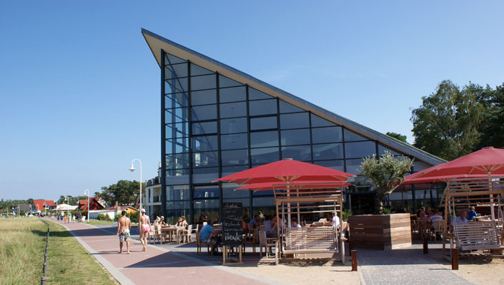 Das Hotel »Sandstrand Ostseeperle« an der Strandpromenade von Glowe   Der Sandstrand von Glowe