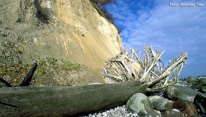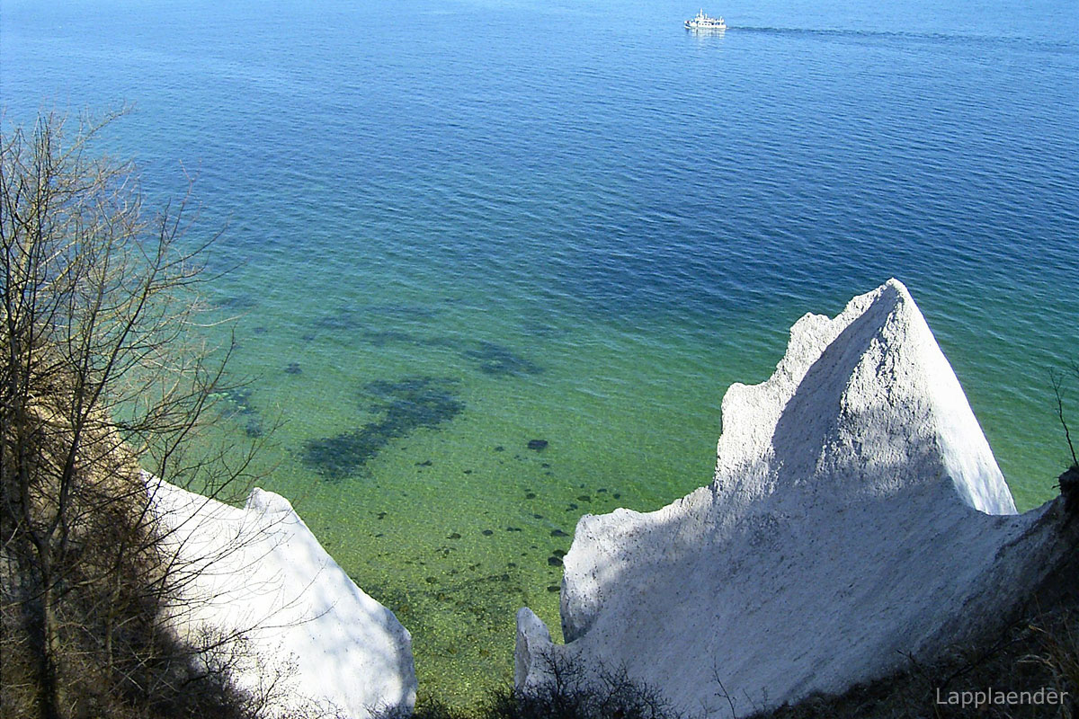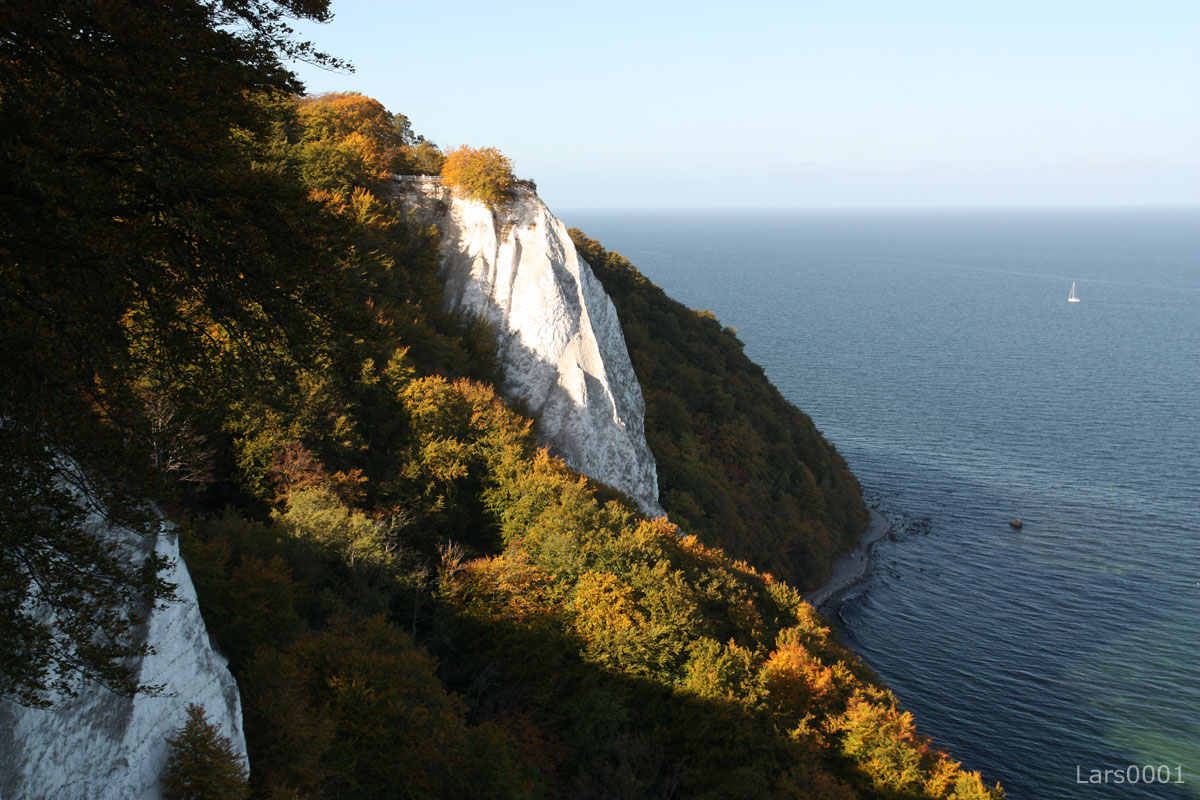 Der Königsstuhl auf Rügen - Foto: Lars0001   Die Wissower Klinken vor dem Abbruch 2005 - Foto: Lapplaender